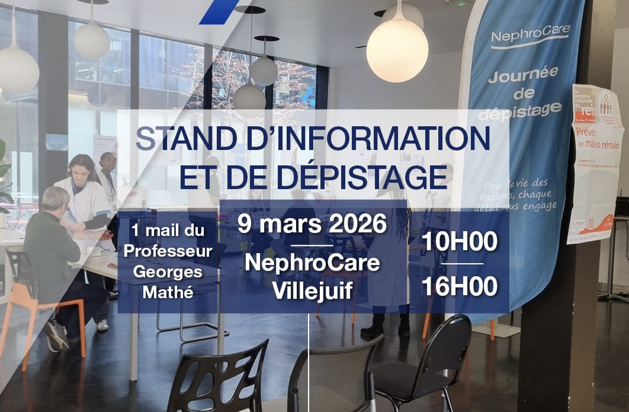 Le 9 mars 2026, une journée de dépistage a été organisée dans le hall du Biopark de Villejuif. 65 personnes ont été reçues sur le stand.