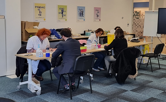 Le 12 mars, les équipes NephroCare Île-de-France et France Rein ont tenu un stand de dépistage directement dans les locaux du siège social de Fresenius Medical Care France. Elles ont accueilli 55 collaborateurs ainsi que douze personnes travaillant dans la zone d’activité du Parc Médicis. Le sourire et l’énergie des équipes ont largement contribué au succès de la journée.
